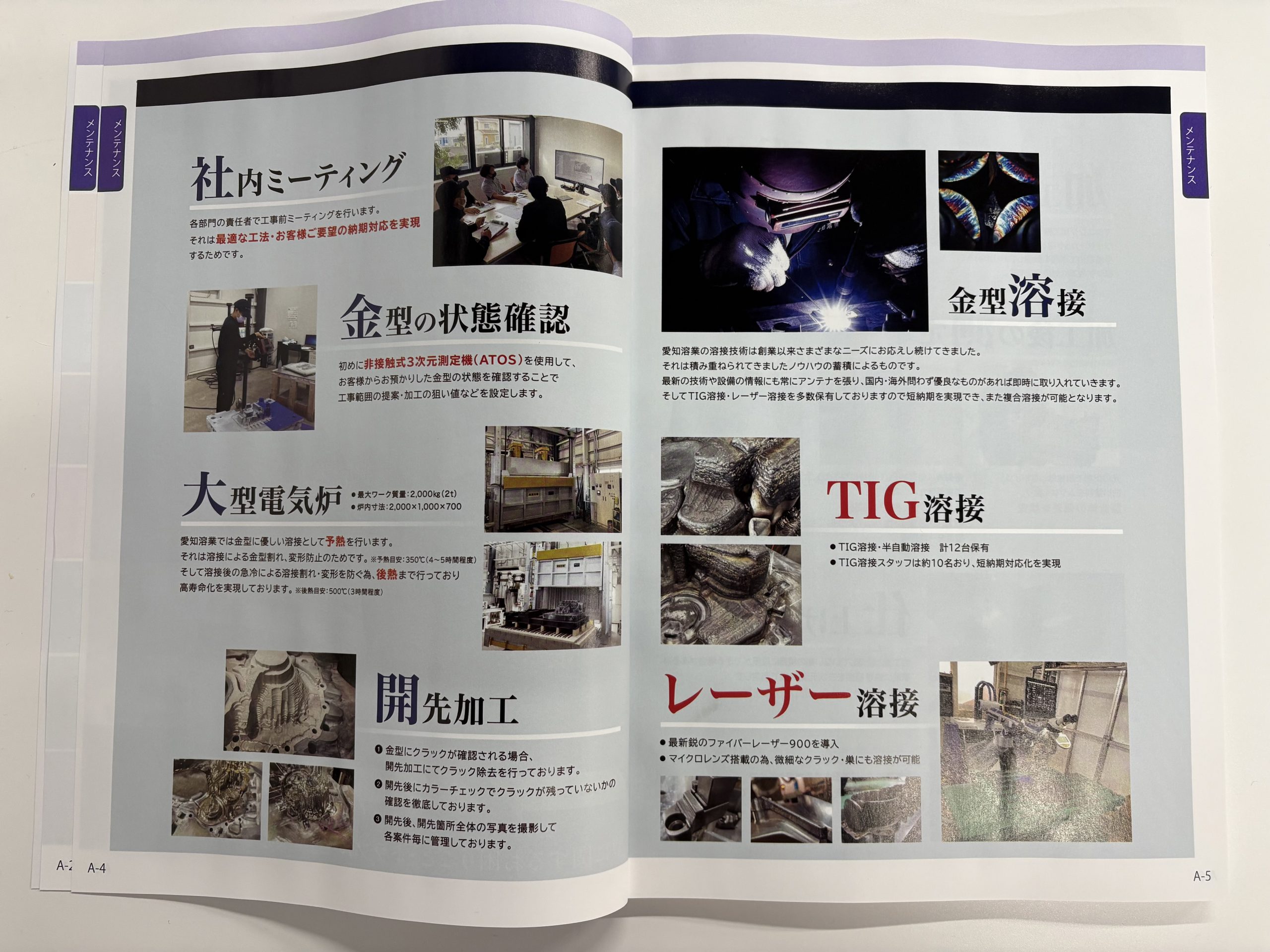 カタログの巻頭(メンテナンス部門)では、私たちの技術と製品を詳しく紹介しています!
